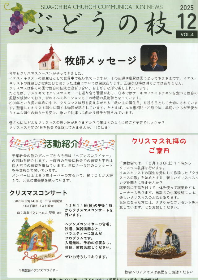 12月20日(土) 未定 SDA千葉キリスト教会 ライブ配信有ります。
