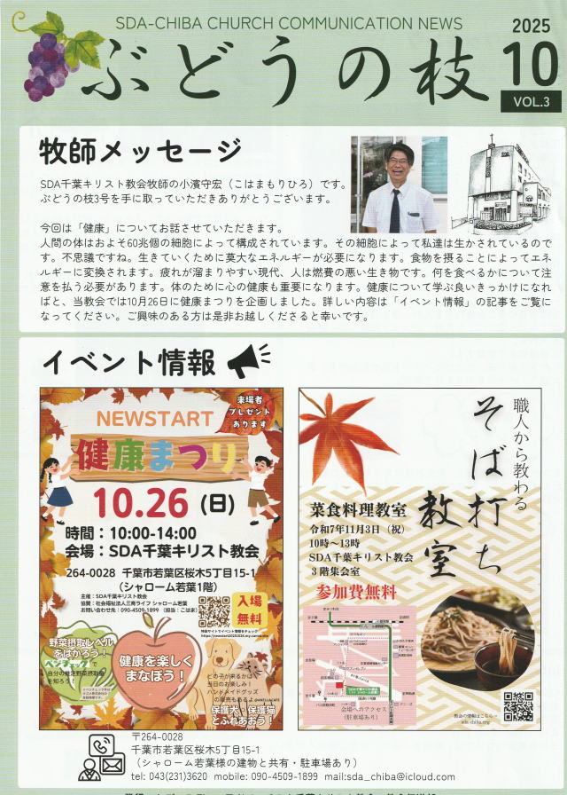 11月15日(土)渡邊 邦男 長老 SDA千葉キリスト教会 ライブ配信有ります。